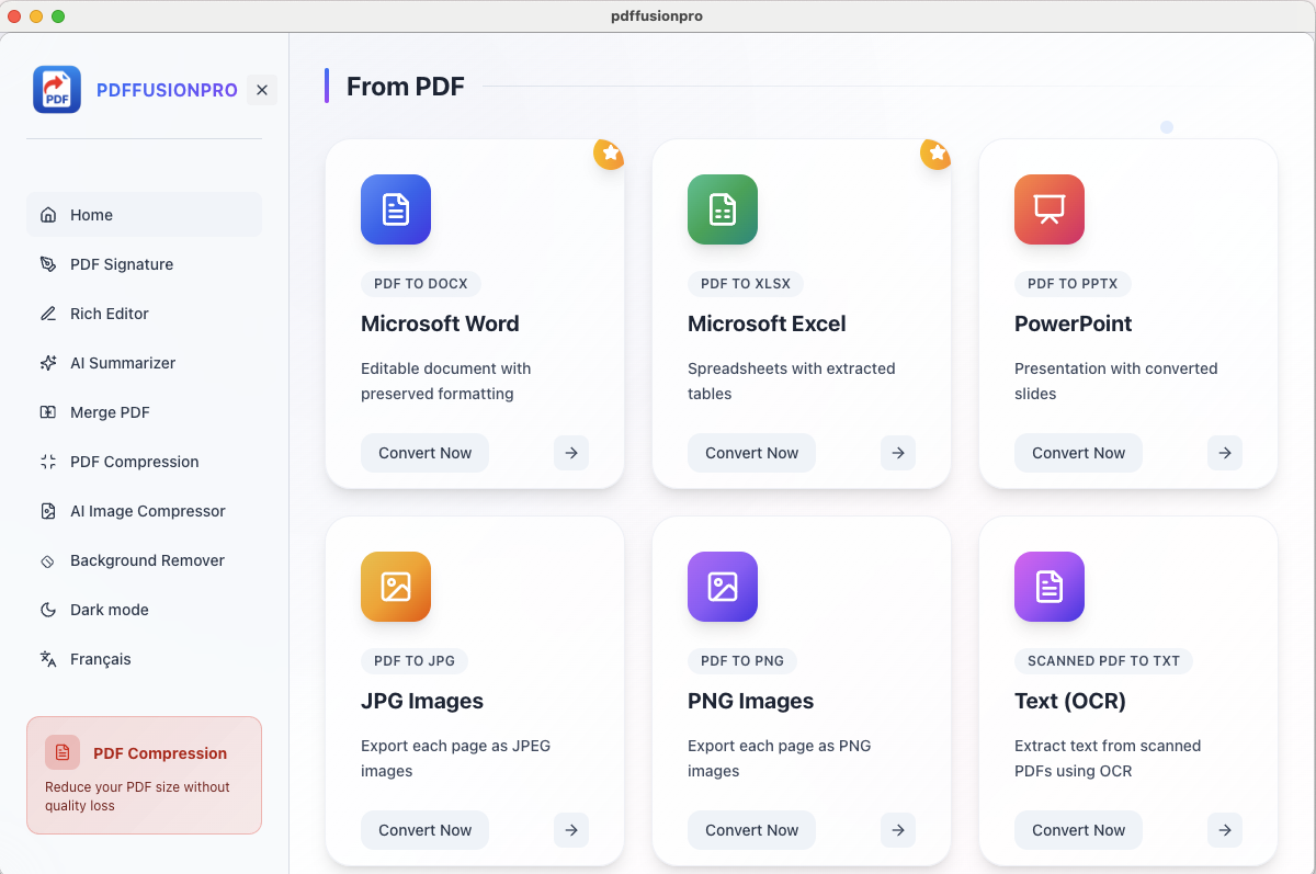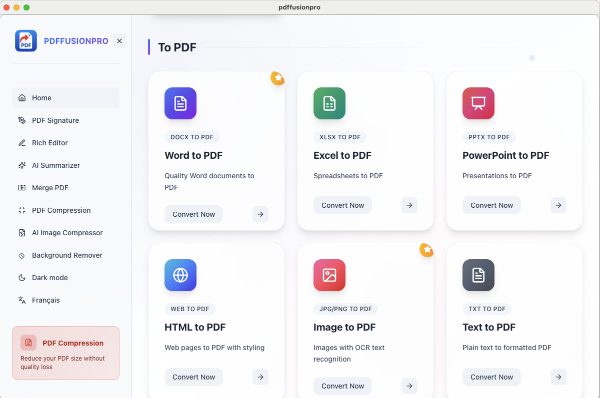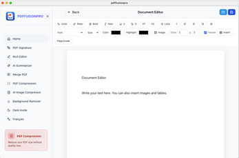 PDFusionPro is your all‑in‑one powerhouse to convert, edit, merge, compress, sign, and summarize documents. Built for macOS and optimized for Apple Silicon, it delivers professional results with a native feel and zero hassle.